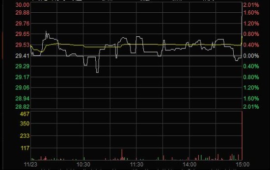 2011年11月23日臨近收盤期間(14:56:24至14:59:28),任某某為了在短期內(nèi)拉升股價(jià),大量申報(bào)買入“X”4筆共計(jì)63,000股,占尾市階段市場(chǎng)申買量的比例高達(dá)75.54%;委托價(jià)格由29.60元升至32.00元,每筆均高于當(dāng)時(shí)市場(chǎng)上的買1檔價(jià)格,三分鐘內(nèi)將股價(jià)由29.35元拉升至30元收盤,拉升幅度達(dá)2.21%。(見下圖)