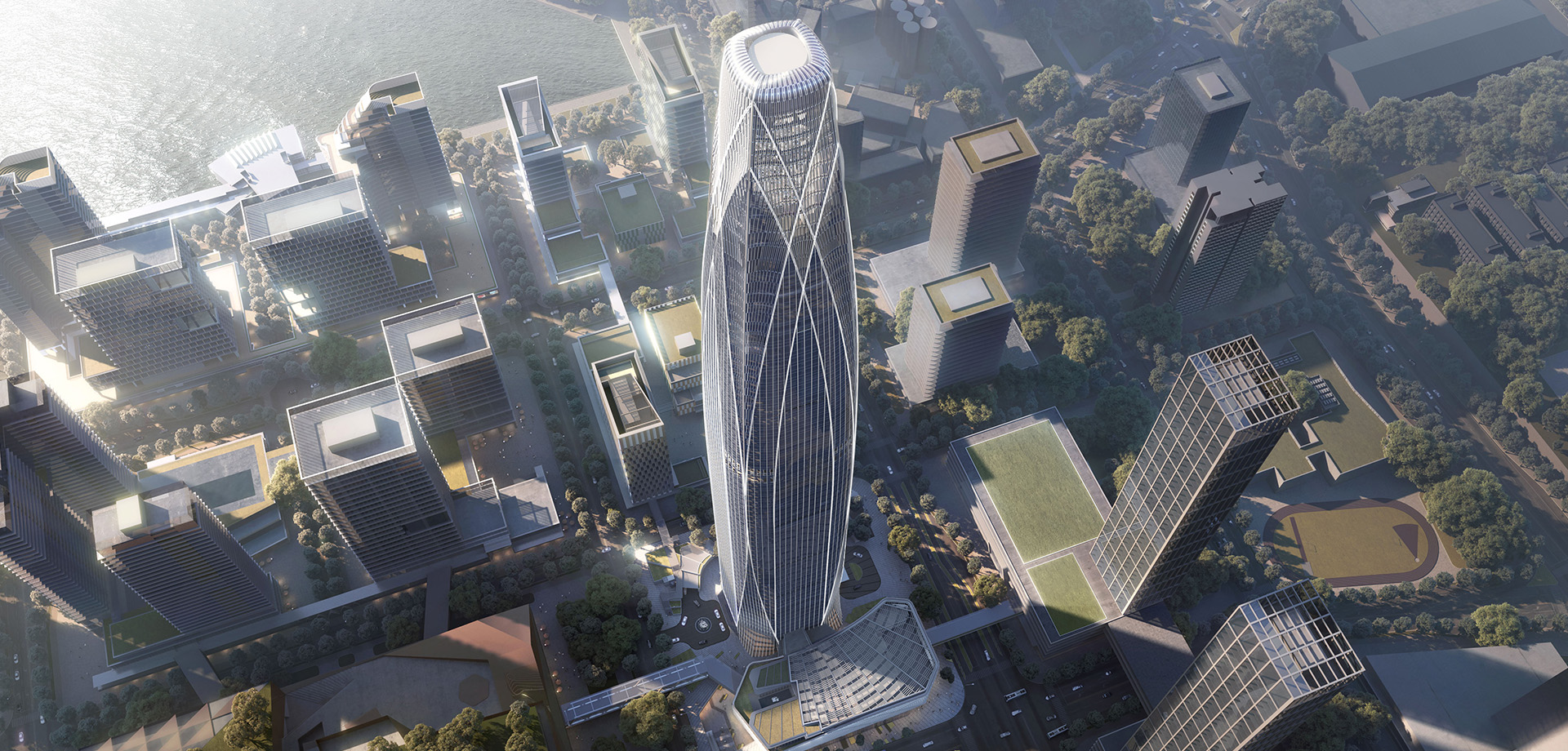 建筑高度:374m(59層) 幕墻面積:8.4萬㎡ 項目設計:AI SpaceFactory Asia Limited、華東建筑設計研究院有限公司 幕墻類型:單元式玻璃幕墻、框架式玻璃幕墻等