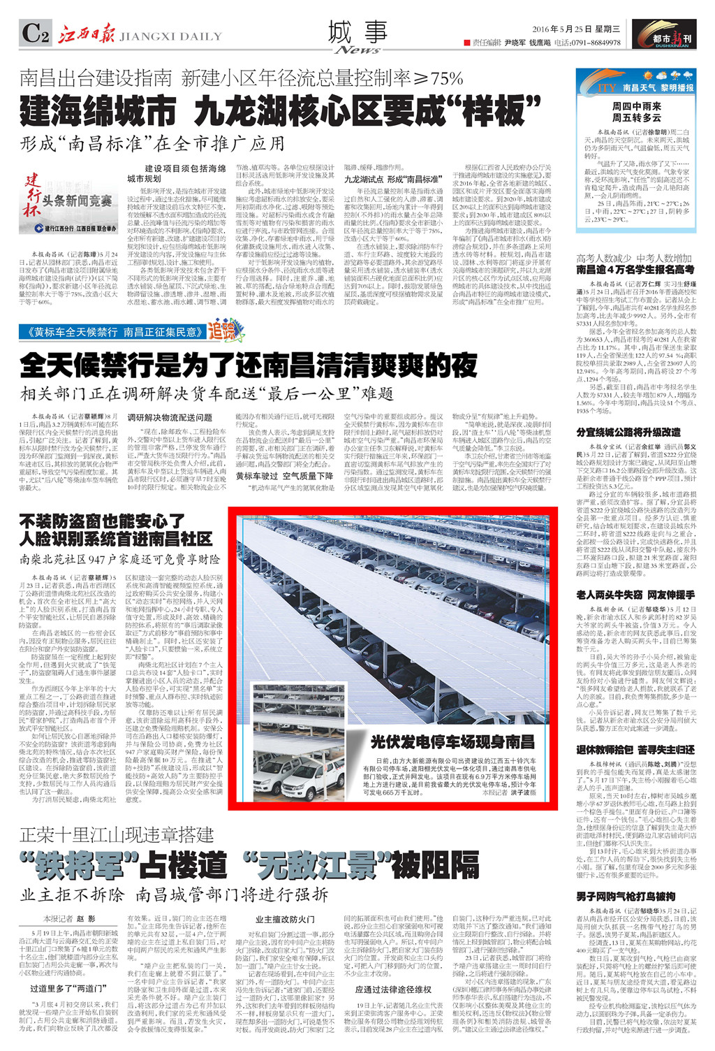 《江西日報》、《南昌日報》重點版面圖文報道方大新能源公司江西五十鈴停車場光伏發電項目