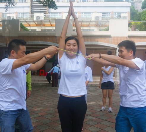 活動由每組十幾個組員在指壓板上團隊跳繩,計數最多的隊伍獲勝。這一項目在講究技巧的同時,最考驗大家的團隊協作能力和忍耐力,同時也要求大家及時調整狀態,主動適應變化。只有大家積極參與,通力協作,快速應變才能更好的完成此項任務。