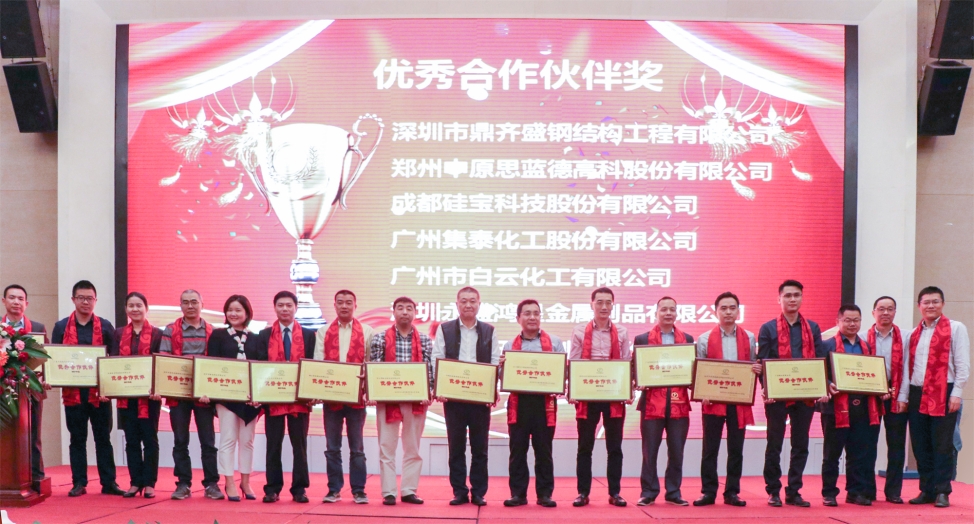 答謝會同時舉行了優(yōu)秀合作伙伴頒獎典禮,表彰了2017年度在質(zhì)量、技術(shù)、服務(wù)等方面做出杰出貢獻的合作伙伴,江門耀皮工程玻璃有限公司等十五家企業(yè)榮獲優(yōu)秀合作伙伴獎。