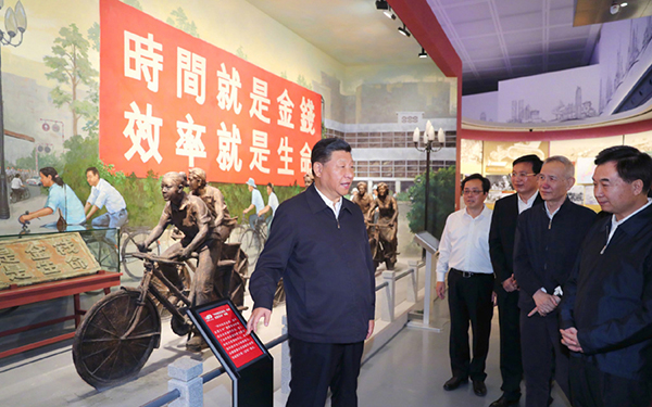 10月24日,中共中央總書記、國(guó)家主席、中央軍委主席習(xí)近平來到深圳市福田區(qū),在深圳市當(dāng)代藝術(shù)館與城市規(guī)劃展覽館參觀了“大潮起珠江——廣東改革開放40周年展覽”。隨后又前往深圳前海考察,參觀了深圳市萬科前海企業(yè)公館展覽廳。