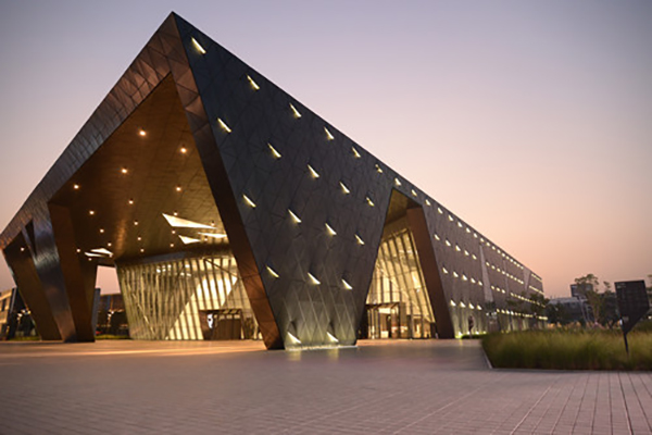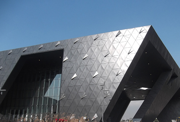 深圳市當(dāng)代藝術(shù)館與城市規(guī)劃展覽館坐落于深圳中心區(qū)中軸線上,是中心區(qū)最后一個(gè)大型公共文化建筑,總建筑面積約8萬平方米。作為推廣新銳藝術(shù)、展示城市的新地標(biāo),該建筑以柔和的空間造型和藝術(shù)形象引起了廣泛的關(guān)注。該項(xiàng)目采用了大量的三角形玻璃幕墻及三角形穿孔不銹鋼+玻璃的雙層幕墻,實(shí)現(xiàn)了外立面傾斜、扭曲和旋轉(zhuǎn)的曲面變化,在確保最佳的采光效果同時(shí),兼顧了遮陽、亮化等功能性需要,極富想象力和生命力,但也對(duì)幕墻平整度、施工精細(xì)度等帶來極大的挑戰(zhàn)。方大建科的工匠們,克服了幕墻形式復(fù)雜、材料品種規(guī)格多、施工精度高等種種困難,打造了這座兼具美感和功能性的“表皮”。