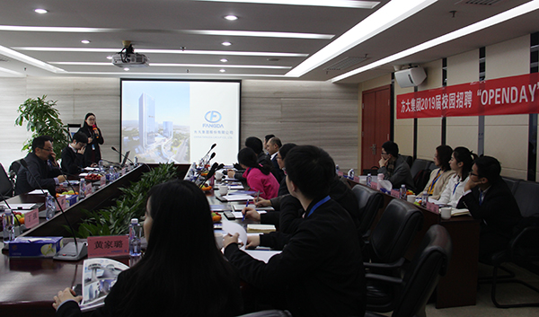 方大集團人力資源部副部長賈松濤,方大建科設(shè)計院院長文林、人力資源部經(jīng)理關(guān)鑫介紹了方大集團的基本情況、幕墻產(chǎn)業(yè)以及未來發(fā)展遠景,并希望通過“OPENDAY”活動讓各大高校教師對方大集團有全新的認識,拉近與各大高校的距離。