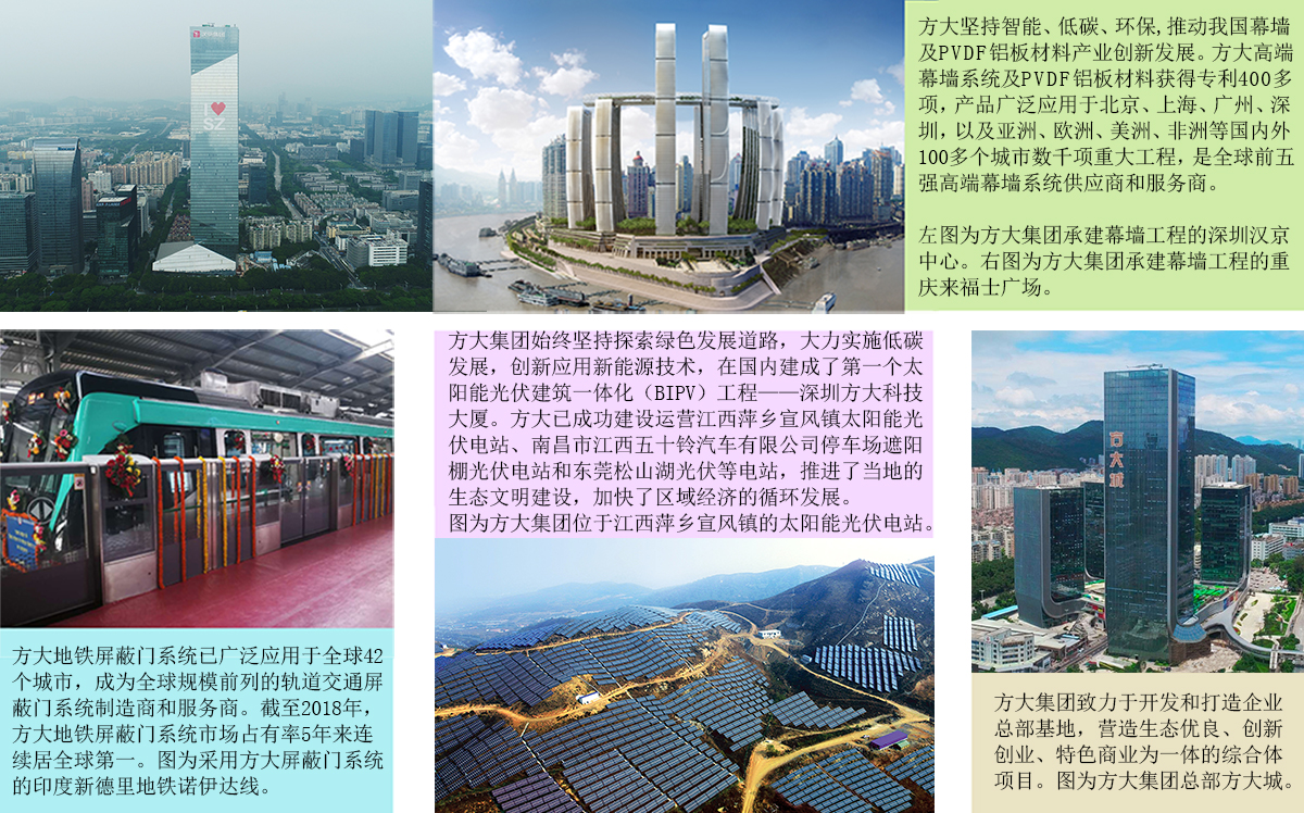 24年來,方大集團(tuán)依托資本市場力量,緊隨時(shí)代潮流,堅(jiān)持創(chuàng)新發(fā)展,現(xiàn)已成為擁有高端幕墻系統(tǒng)及新材料產(chǎn)業(yè)、軌道交通設(shè)備及系統(tǒng)產(chǎn)業(yè)、新能源產(chǎn)業(yè)、企業(yè)總部基地等業(yè)務(wù)板塊于一體的著名大型高新技術(shù)企業(yè)。方大旗下現(xiàn)有深圳市方大建科集團(tuán)有限公司、方大智創(chuàng)科技有限公司、東莞市方大新材料有限公司、成都方大建筑科技有限公司和方大新材料(江西)有限公司5家國家高新技術(shù)企業(yè),業(yè)務(wù)遍及全球120多個(gè)國家和地區(qū)。